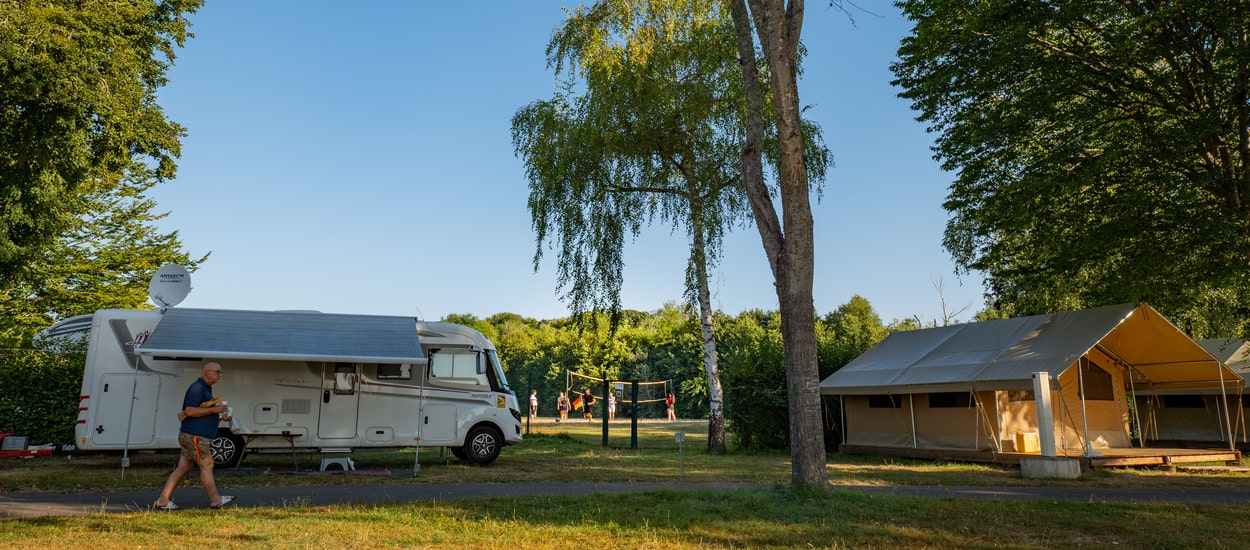 Le Camping des Halles vous propose de nombreux emplacements ombragés ou ensoleillés pour venir faire du camping, dans un environnement calme et nature. Un camping totalement plat, conçu pour accueillir camping-cars, caravanes, vans aménagés, tentes… Alors, prêt à installer le campement ?